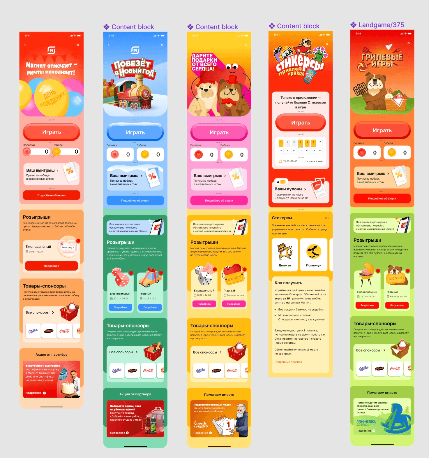 Completely rebuilt the components of the gaming section into a design system, reducing the time-to-market for each promotion and reducing the workload on the product designer and frontend developers
